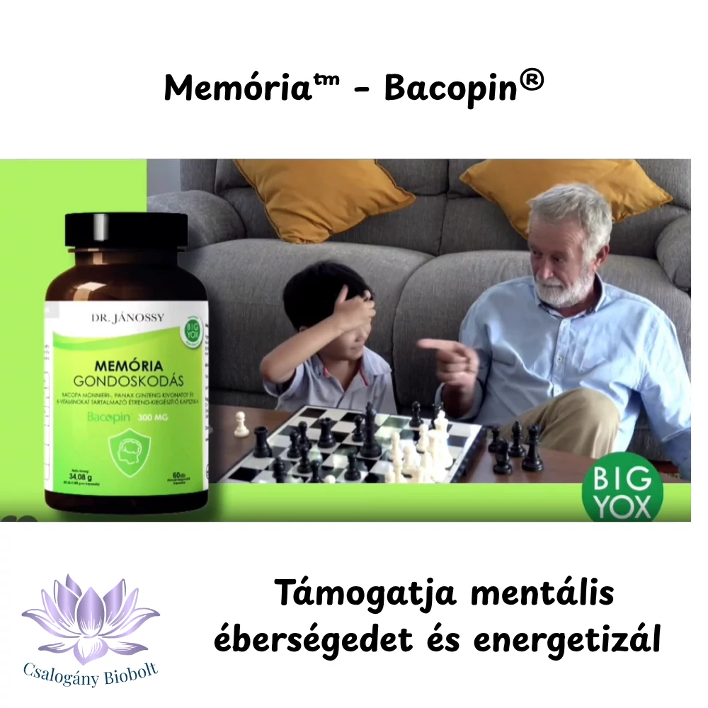 Memória Gondoskodás™, egy természetes Bacopin® alapanyagot tartalmazó termék, ami tudományosan támogatott megoldás az idős emberek mentális egészségének megőrzésére. A Bacopin®, a Bacopa monnieri növény kivonatából származik, amely magas koncentrációban tartalmaz bacozidokat – ezek a hatóanyagok különösen kedvező hatással vannak az agy egészségére. A Memória Gondoskodás™ az időskorban előforduló kognitív hanyatlás és memóriazavarok mérséklésére a Bacopin® a Ginzeng és a B vitaminok kombinációja által nyújt célzott támogatást, elősegítve a memória megőrzését, a tanulási készségek és a szellemi frissesség fenntartását.