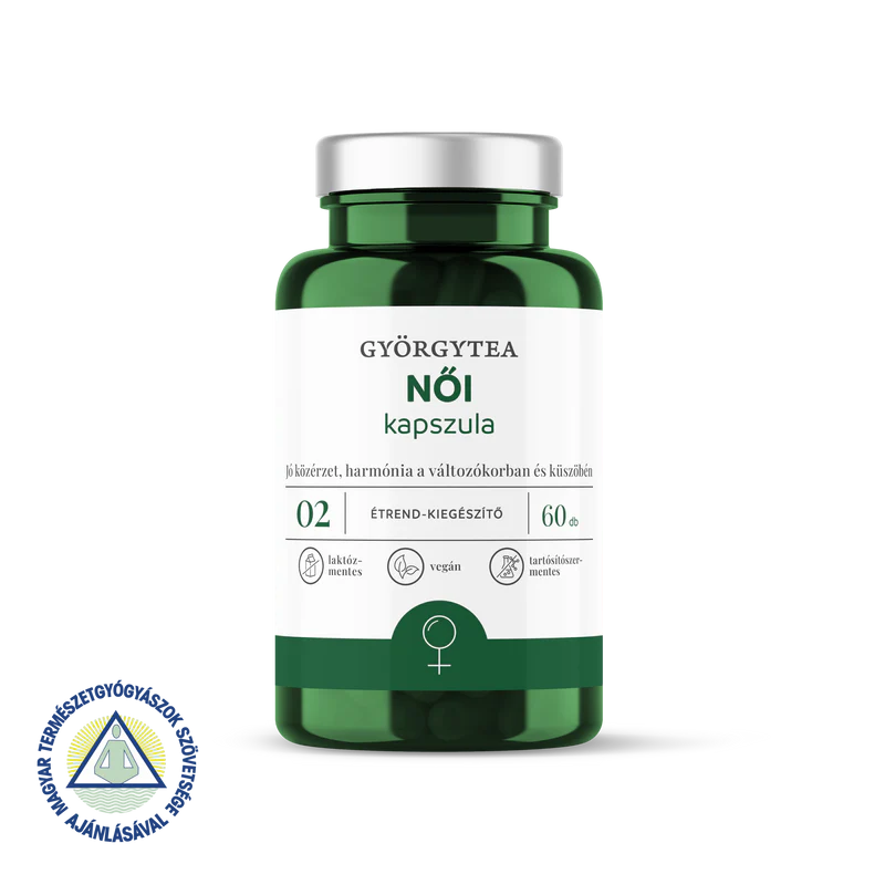 A Györgytea Női kapszula egy étrend-kiegészítő a jó közérzetért, harmóniáért a változókorban és küszöbén.