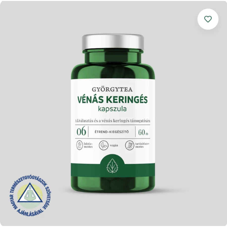 A Györgytea Vénás keringés kapszula egy étrend-kiegészítő a kiválasztás és a vénás keringés támogatására.