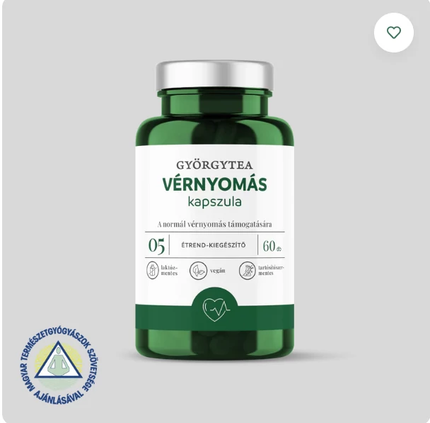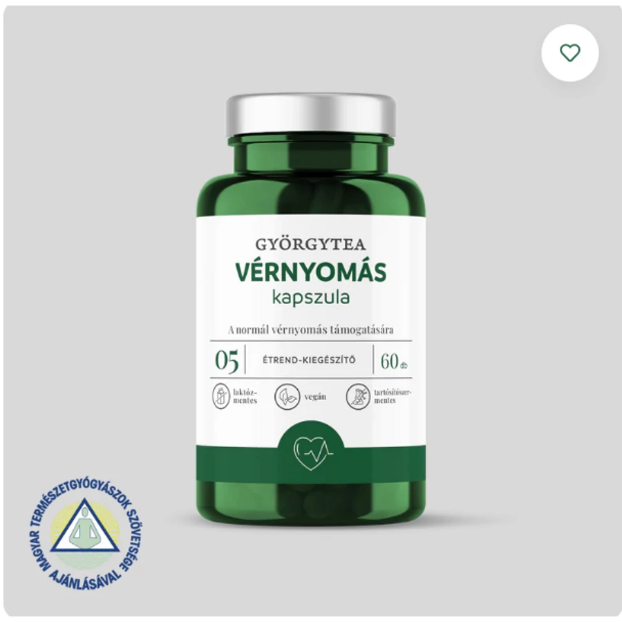 A Györgytea Vérnyomás kapszula egy étrend-kiegészítő a normál vérnyomás támogatására.